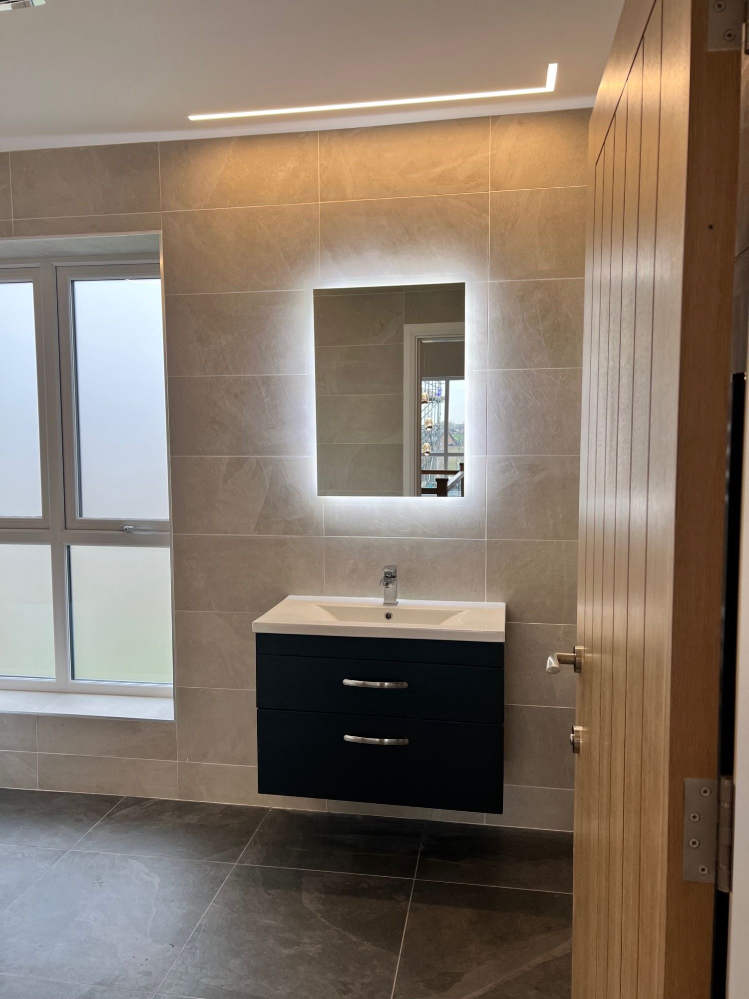 In this property, we decided to give the bathrooms a bit of a mix up- we changed our tiles to a darker grey. and changed the vanity unit from grey to white. By doing this it's given the bathroom a stand alone look and we are really pleased with how its turned out.