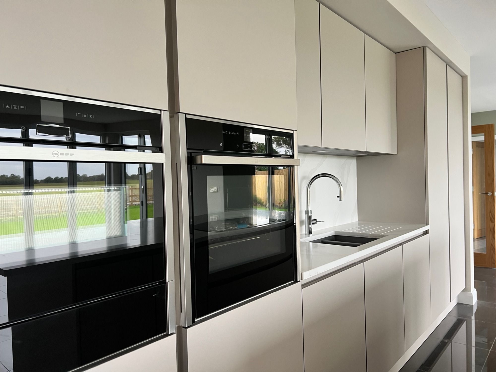 The stunning contemporary kitchen has been designed by Birkdale Kitchen Co. It is a Leicht kitchen with a Quooker tap and Neff appliances.