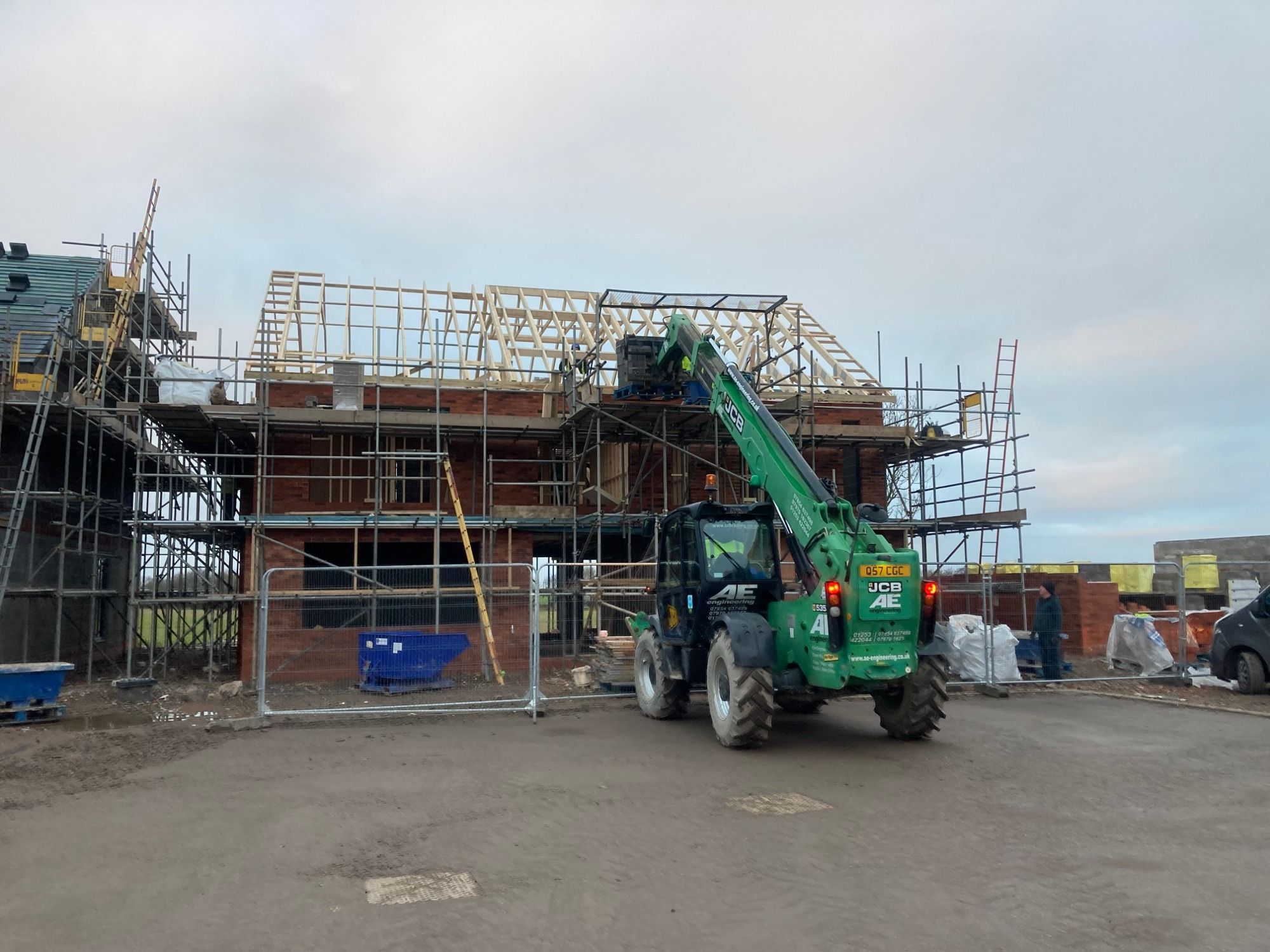 Plot 4 has had their roof trusses installed this week! Skeet Crane hire have been fantastic with providing us with a crane and operator. The joiners and team have worked hard to ensure the roof was installed safely in just one day! Our joiners can now make great progress with the roof installations now and we will hopefully have a fully fitted roof by Christmas! Fingers crossed the British winter weather is kind to us!