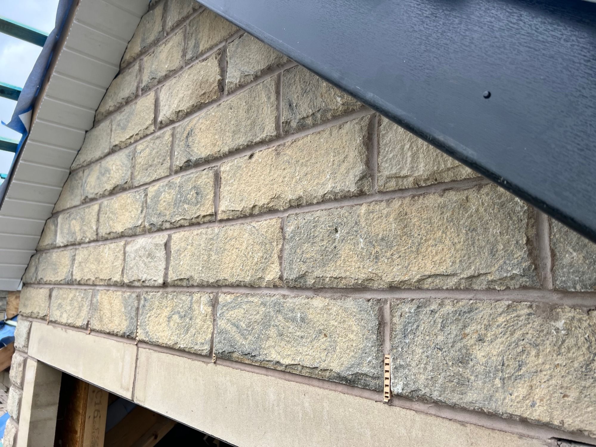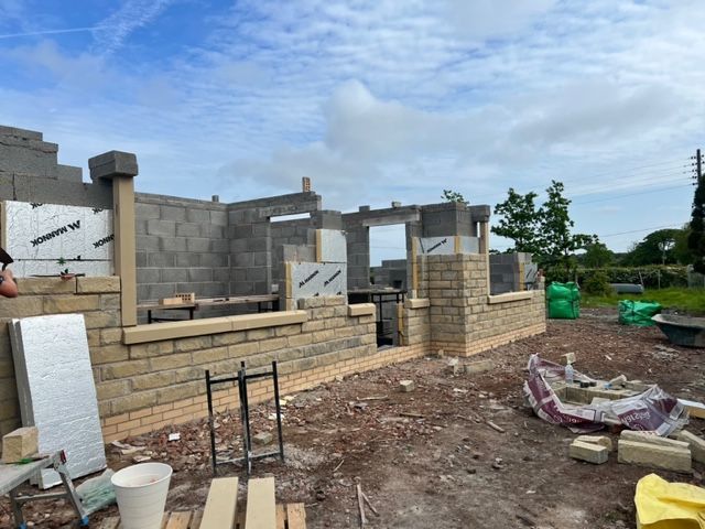 The stonework has begun and its looking fantastic. The walls are padded with insulation that is building control approved. The stone detailing around the windows are a wonderful feature to the home.