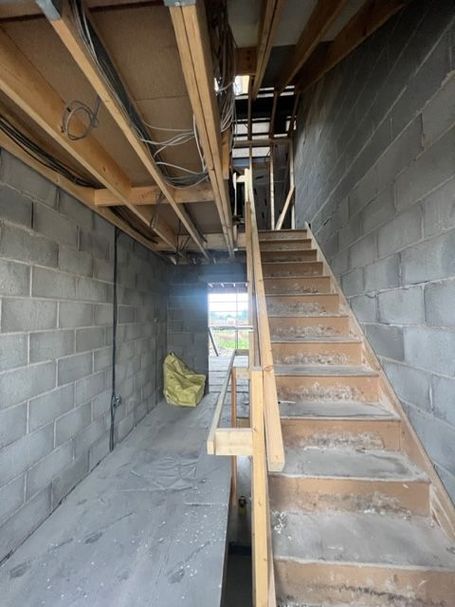 And all of a sudden this place is starting to look like a house! The stud walls have gone in and electrics and plumbing first fix is well under way! our temporary staircase are installed for safety measures- rather than using ladders to climb to each floor.