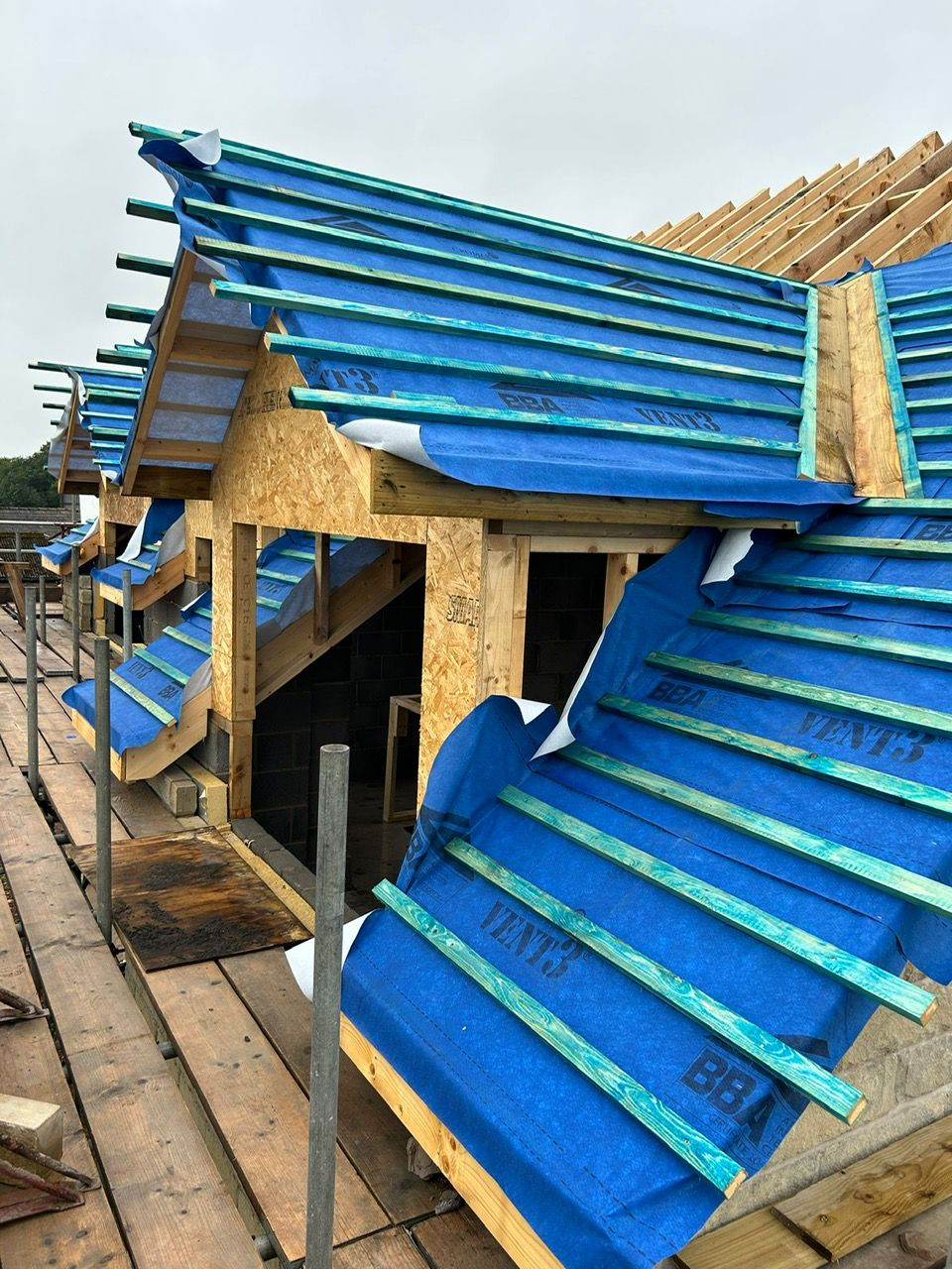 The felt and baton roofing process has started to take shape. The roof has alot of intricate parts to it, making it a complicated job to work on. However, we are sure it will look very impressive when its complete.