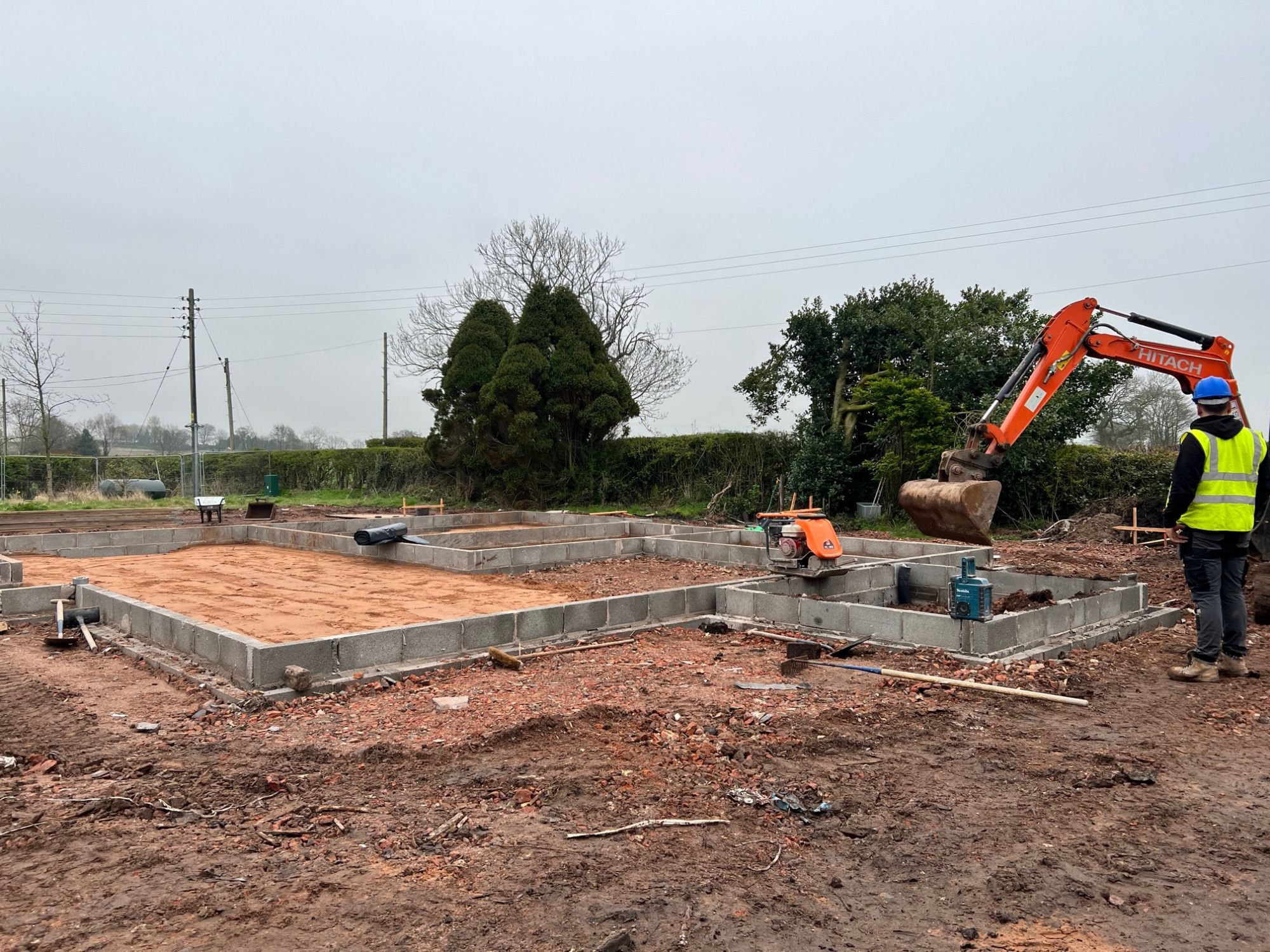 After a wet few days the concrete has been poured and the brickwork has begun to take shape, in preparation for the concrete slab to be poured.