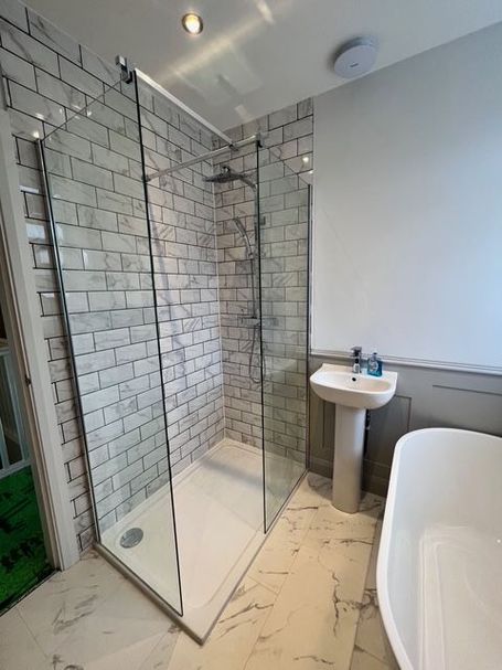 Possibly one of our favourite transformations in the house is the main bathroom. Now fitted with a free standing bath and walk in shower. The room is bright, fresh. relaxing and ready for the clients to enjoy a much anticipated calming soak in that bath!